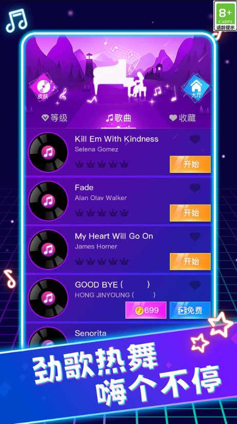 3、解锁更多热门经典与潮流新曲,成就音乐节奏大师的无上荣耀,完成一道道难关。