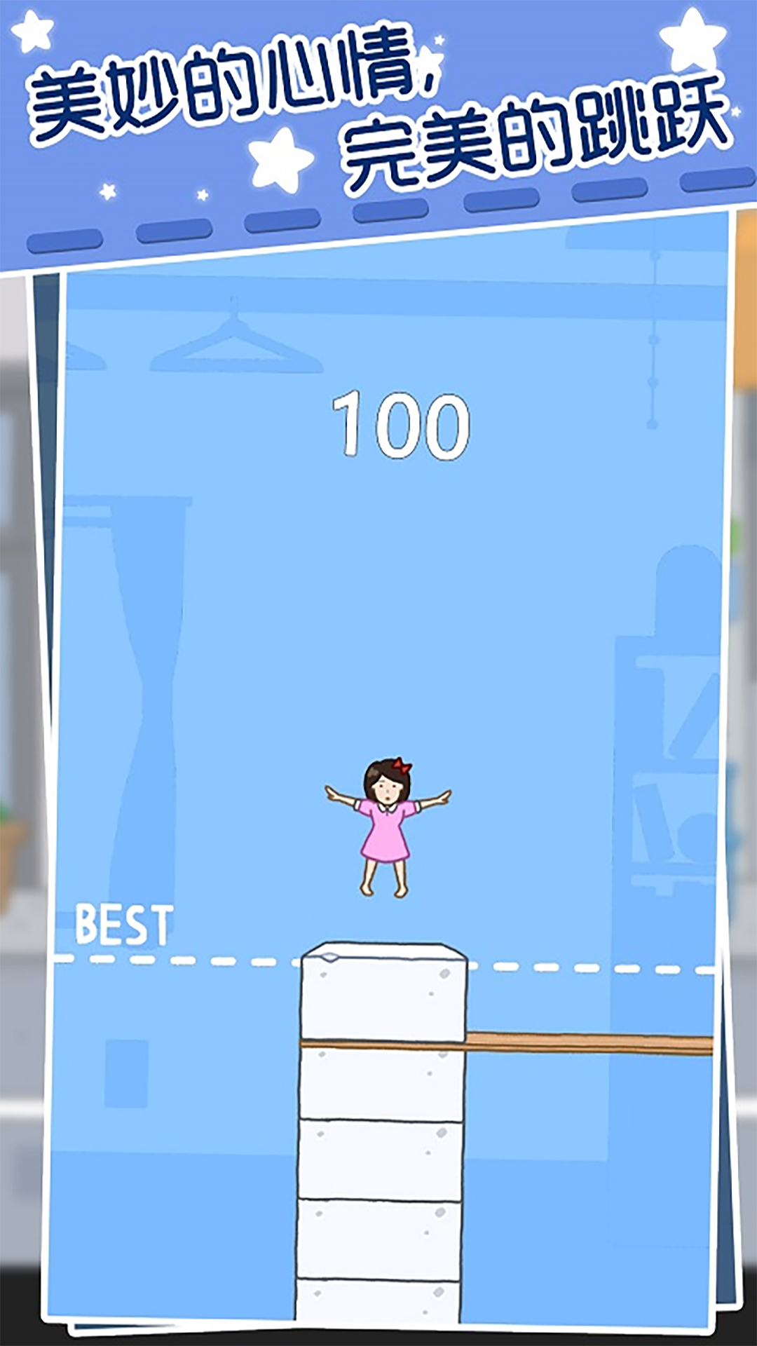 3、通过手指触摸屏幕的时间长短来控制少女的跳跃力度。