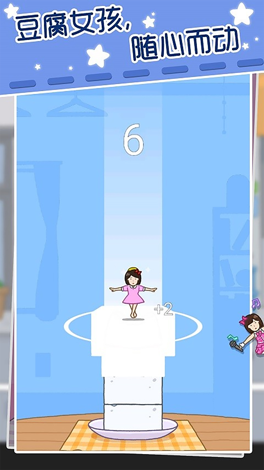 跳跳少女游戏是一款极具创意的物理平台跳跃游戏,玩家将操控一位身手敏捷的少女,在一座由摇摇欲坠的豆腐块堆叠而成的高塔上不断向上攀登,游戏的核心玩法充满挑战与乐趣:每一块豆腐都柔软易碎,少女的每一次落点都必须精准而轻巧,利用微妙的力度控制与时机把握,在豆腐崩塌前跃向新的高度,最终突破天际,完成看似不可能的挑战。