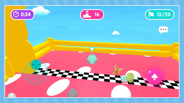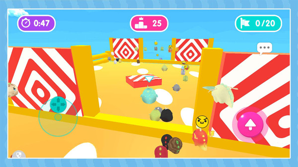 3、每局游戏由三个挑战关卡组成,玩家需在多变地形中快速决策,存活至终点或率先抵达以获胜。