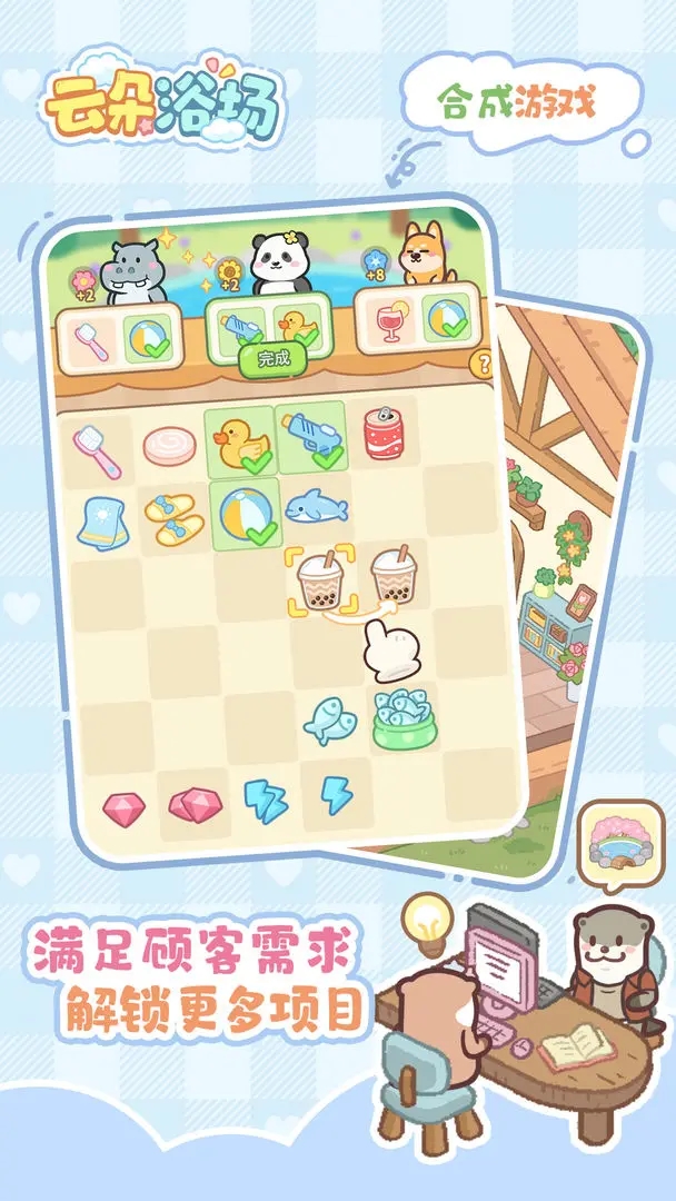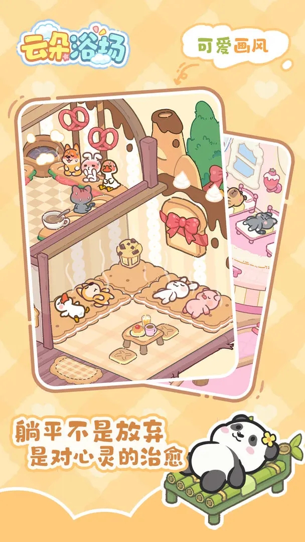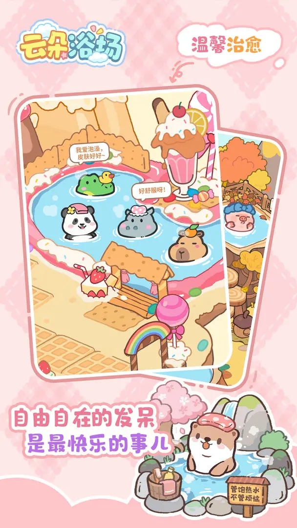 云朵浴场是一款高度自由的模拟经营游戏,在游戏中,玩家将经营自己的浴场,通过不断的升级设施吸引大量的顾客获取大量的金币,解锁新的高级装备,治愈自我沉浸其中玩法轻松有趣,以其独特的空中浴场设定和自由的经营玩法,为玩家打造了一个既充满想象力又温暖心灵的模拟世界。在这里,你不仅是经营者,更是天空乐园的造梦师,每个设计都在编织云上的童话。