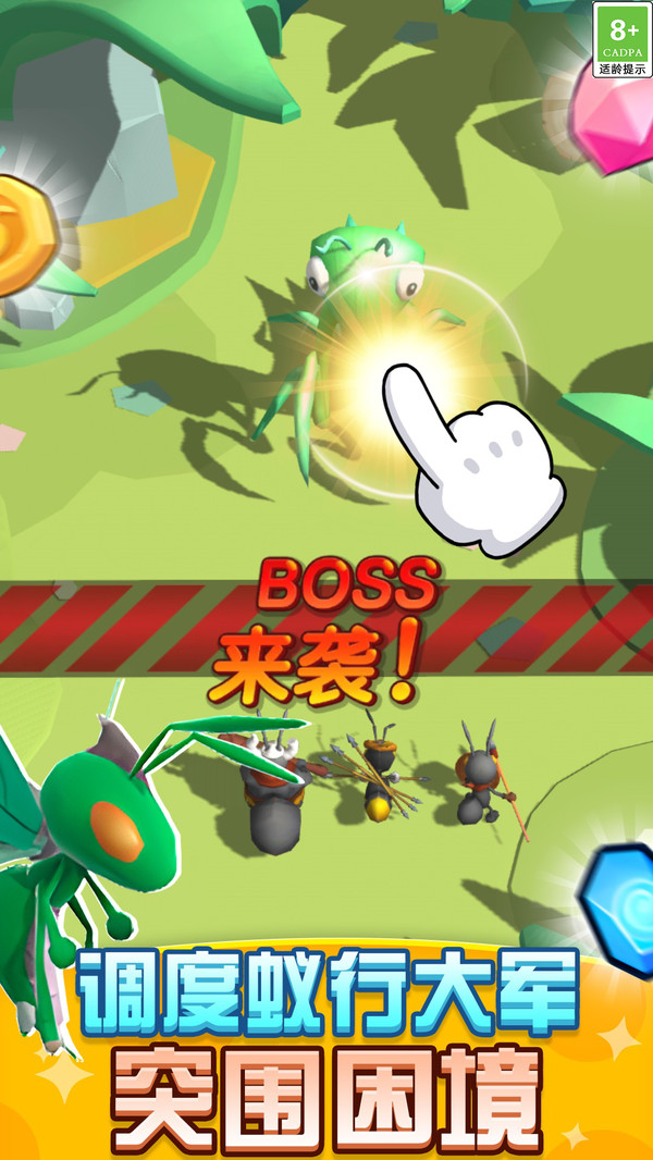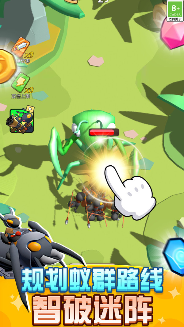 2、玩家需要实时观察战局,通过点击或划屏操作,指挥你的蚂蚁部队集火攻击特定目标或移动到关键位置。