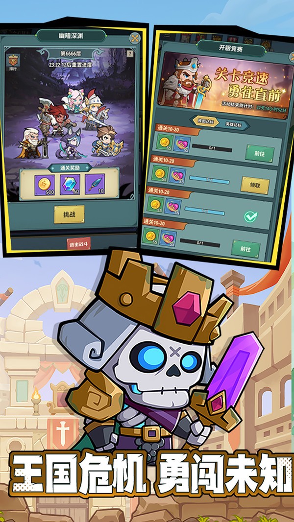 4、组建强大的英雄阵营,获取丰富的奖励,升级角色的战斗力,迎战大量的敌人。