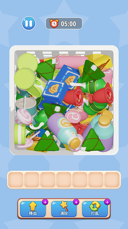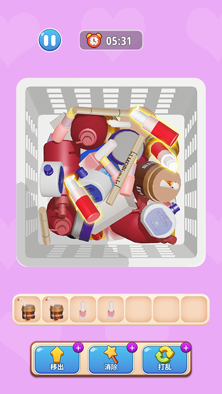 2、关卡中点击3个相同的物体,就能快速去消除。