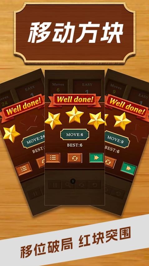 3、经过深思熟虑,找到那个关键的移动序列,看着红色方块顺畅滑出时,所带来的智力上的满足感。