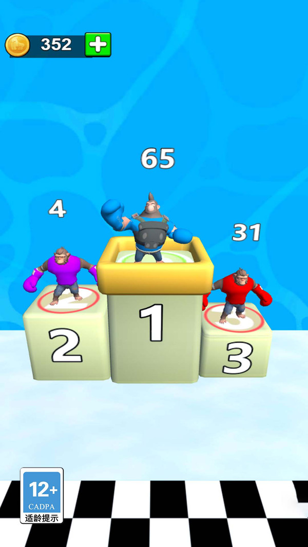 3、在完成进化并扫清障碍后,玩家需要把握时机,与其他猩猩竞争者展开最后的速度比拼,率先冲过终点线以赢得关卡胜利。