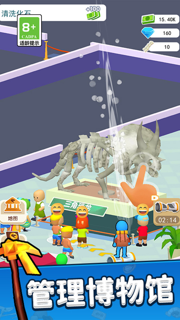 3、将挖掘好的化石拿去博物馆进行展览,获取门票收益。