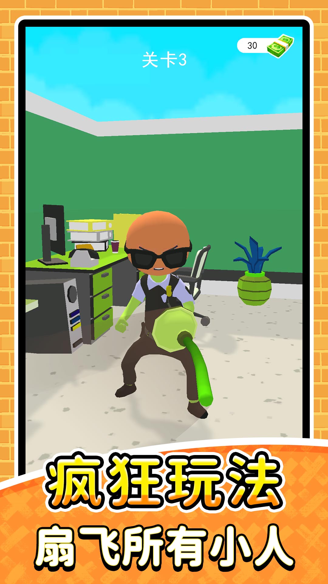 2、可自定义外观,如戴安全帽的社畜,碰撞时表情扭曲,如瞪眼、吐舌,老板形象肥胖易怒,被撞后飞出画面;