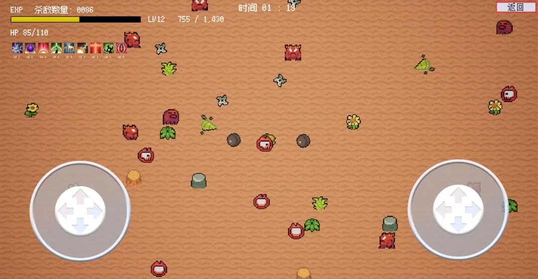 2、控制虚拟摇杆移动忍者,消灭沿路的怪物,不断的攻击周围的对象,获取奖励。