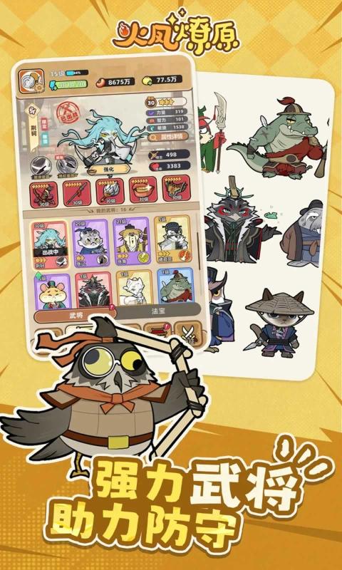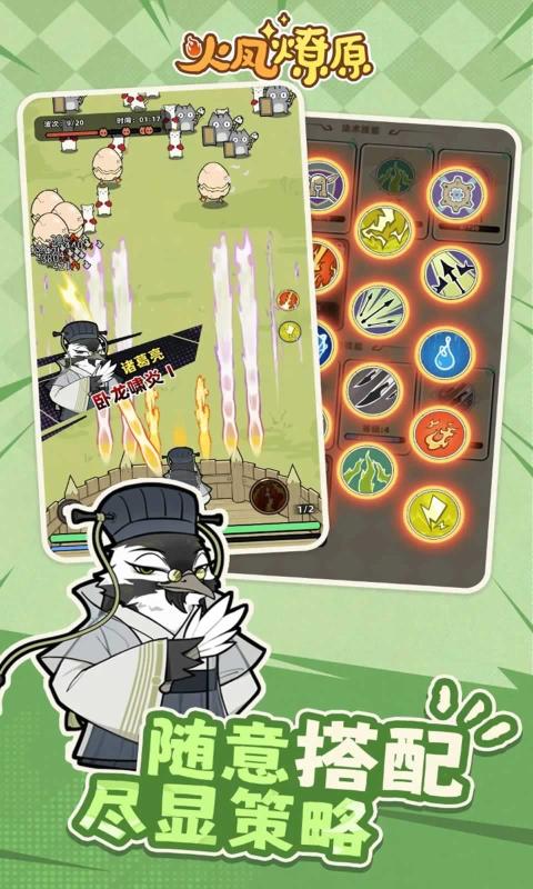 火凤燎原是一款以动物为主角融合三国故事的塔防对战游戏,选择经典英雄发挥角色的专属技能,抵御一波波的敌人,不断的获取新的技能,在大量的攻击下艰难的存活下来,解锁新的武将和技能,一场以萌系动物为主角,却又充满铁血与硝烟的宏大冒险,正等待你的到来。然而,这并非一场传统的征战,而是一场融合了激烈弹幕塔防与主动进攻策略的生存试炼。