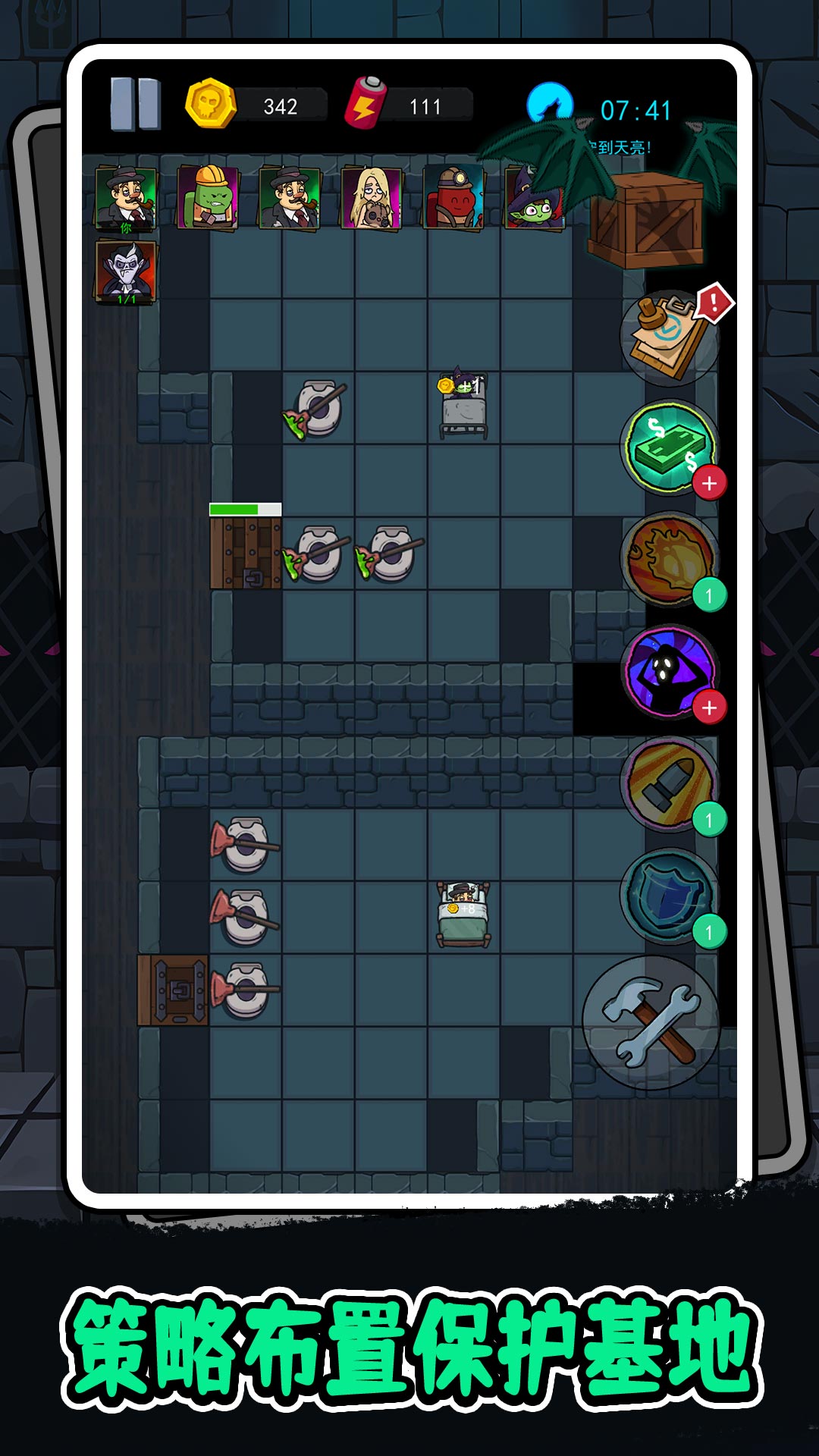 4、躺在床上就能获得金币,金币能够升级炮塔等等武器,开始射击敌人。