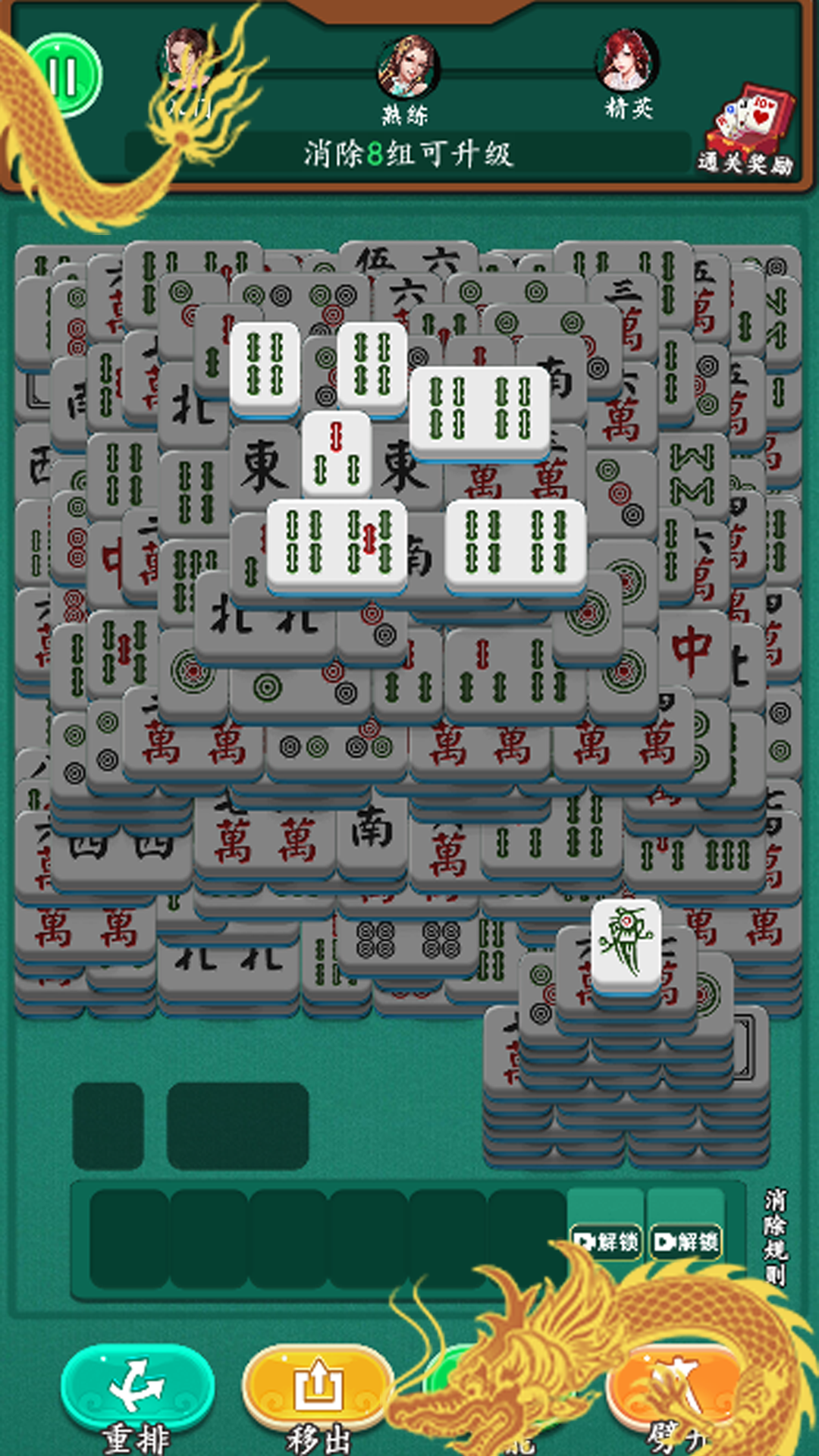 2、将麻将和三消结合的想法太棒,不只是找相同,更需要动脑筋,策略性很强。