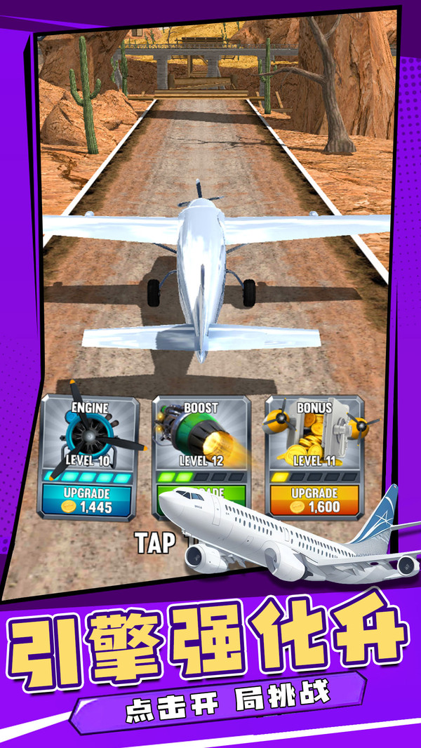 1、在每次开始飞行之前,玩家可以利用金币购买飞机引擎以及动力的强化。