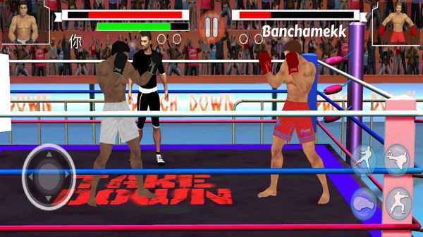 1、通过虚拟按键控制拳击手的移动、闪避以及施展直拳、勾拳、摆拳等基础攻击,组合按键可以打出伤害更高的连续技。