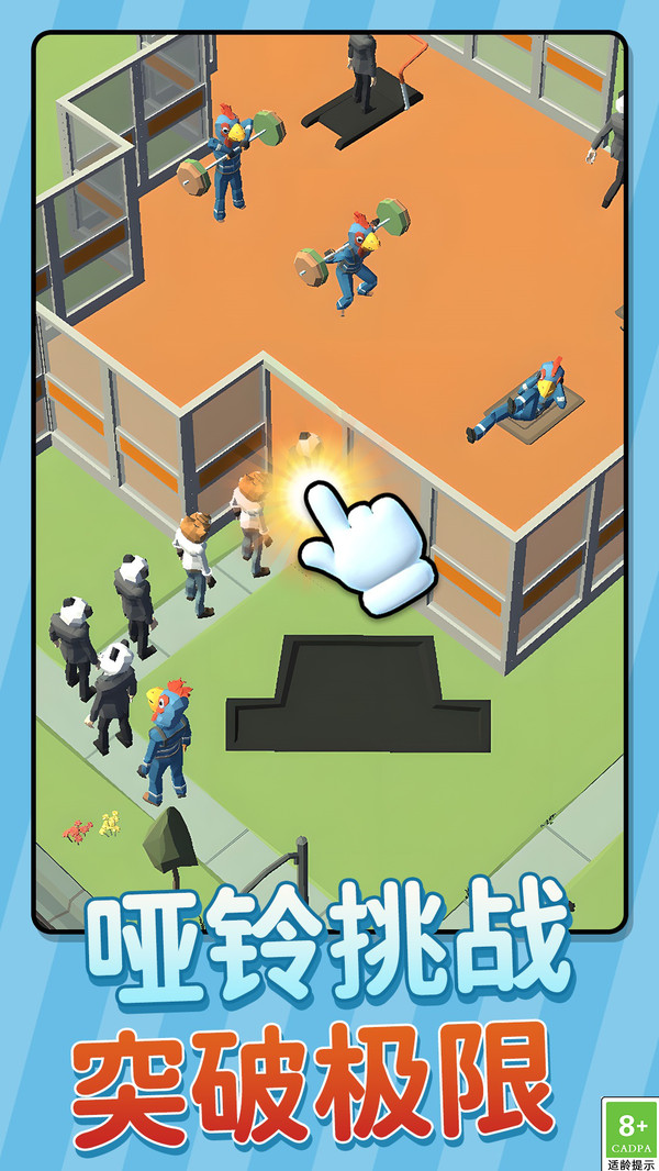 1、看着Q版的小人们在各类器械上努力运动,流汗锻炼的动画效果十分可爱,为模拟经营过程增添了满满的生机与活力。