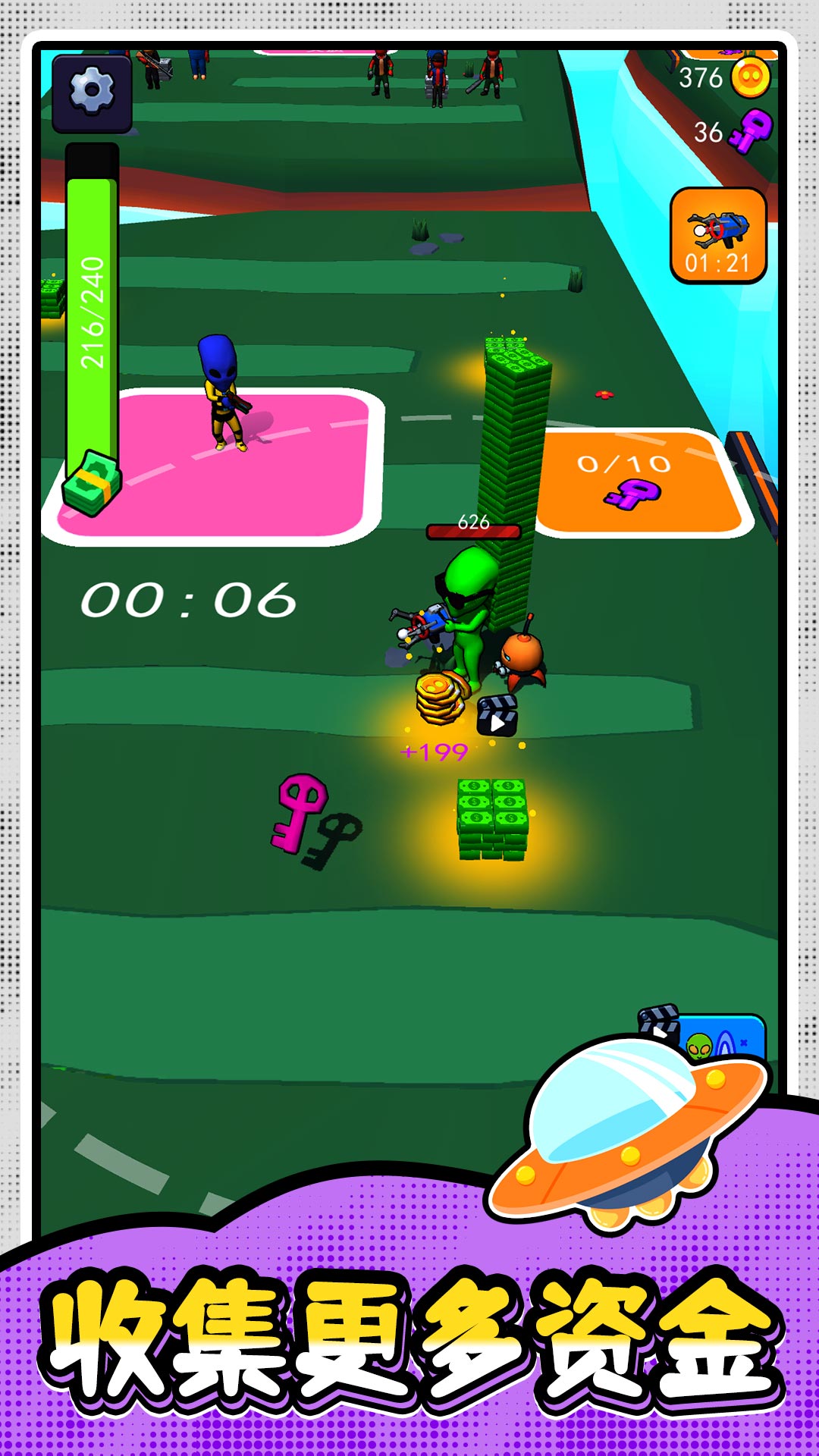 2、时刻小心周围的敌人出现,关键时刻拾取武器提升你的战斗值。