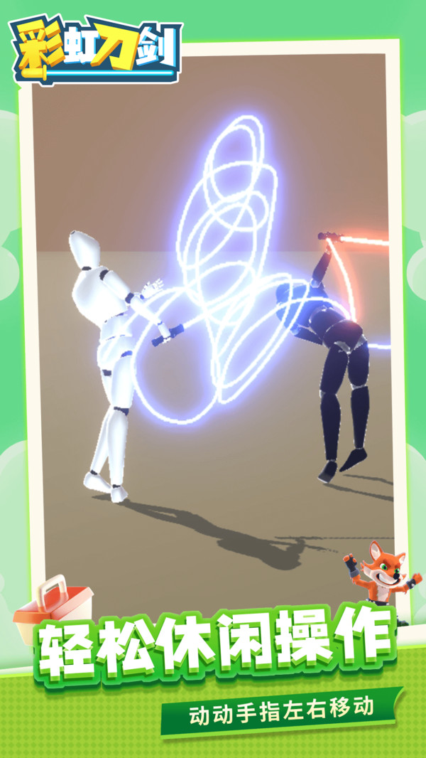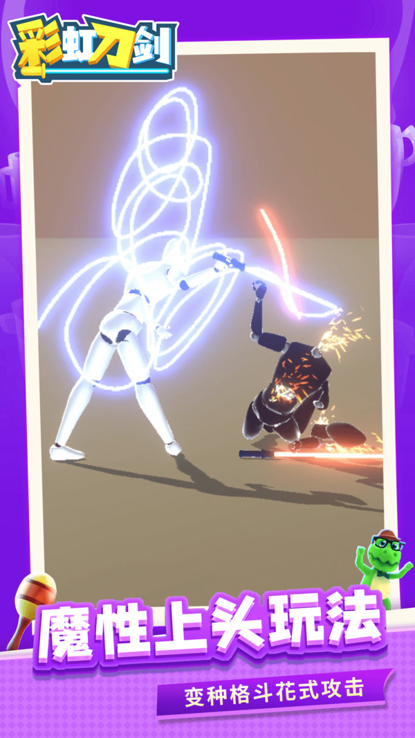 彩虹刀剑是一款以光剑格斗为核心玩法的趣味竞技游戏。玩家将操控角色,手持炫丽的彩虹光剑,在各个关卡中与不同的对手展开激烈交锋。无需使用复杂按键,而是通过手指在屏幕上自由画线,来直接决定光剑的攻击轨迹。你需要运用策略,画出精妙的攻击路径来格挡、闪避并击败敌人。每成功战胜一个关卡的守关对手,即可解锁并进入下一个更具挑战性的关卡。