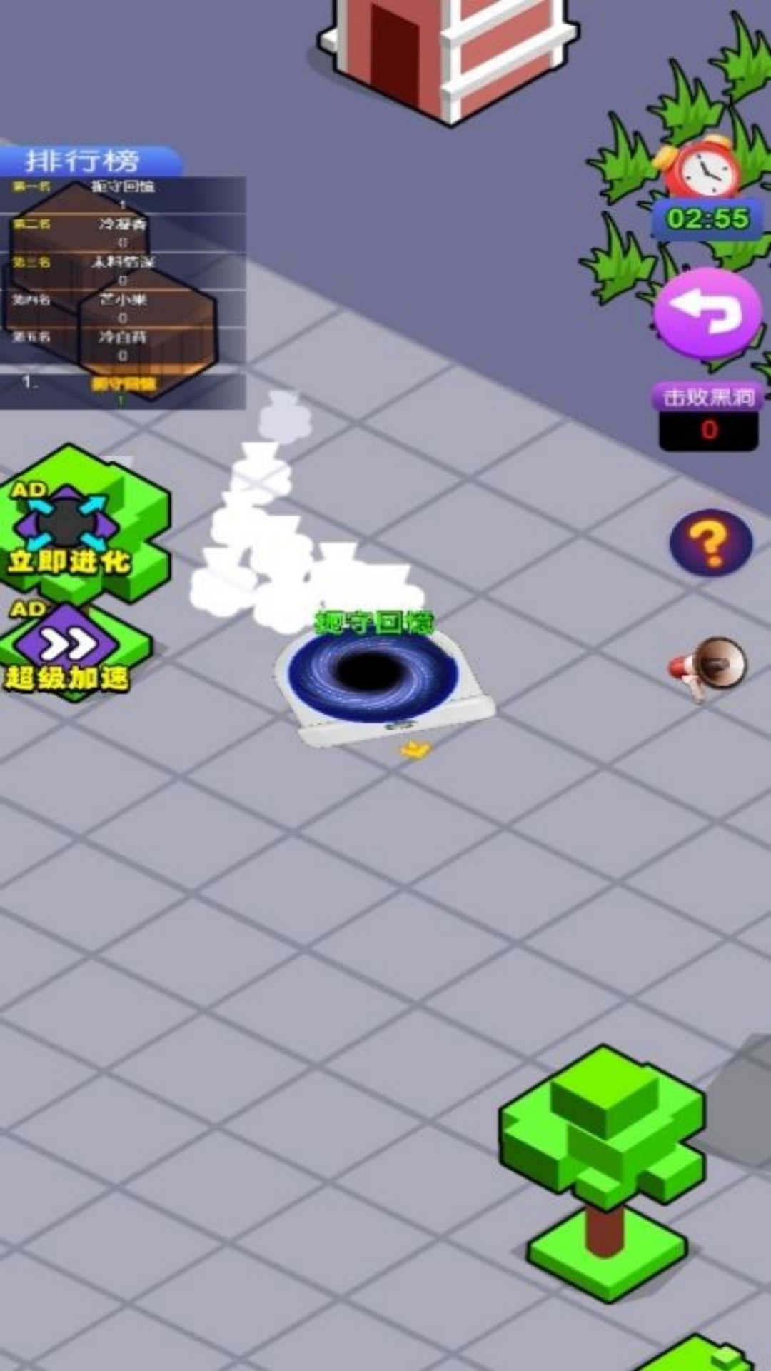 2、多人同屏实时对战,玩家需在固定时间内吞噬更多物体或击败对手,最终存活的黑洞获胜;