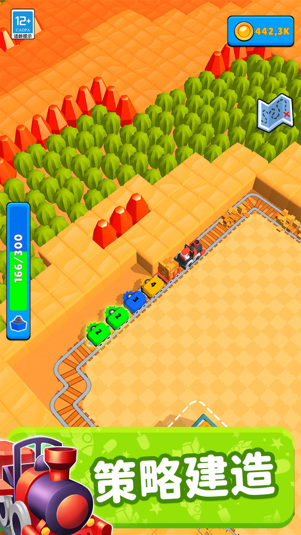3、以关卡或区域形式推进,每张地图都是一个独立的舞台,完成当前区域的铁路建设即可驶入下一个风景全新的场景。