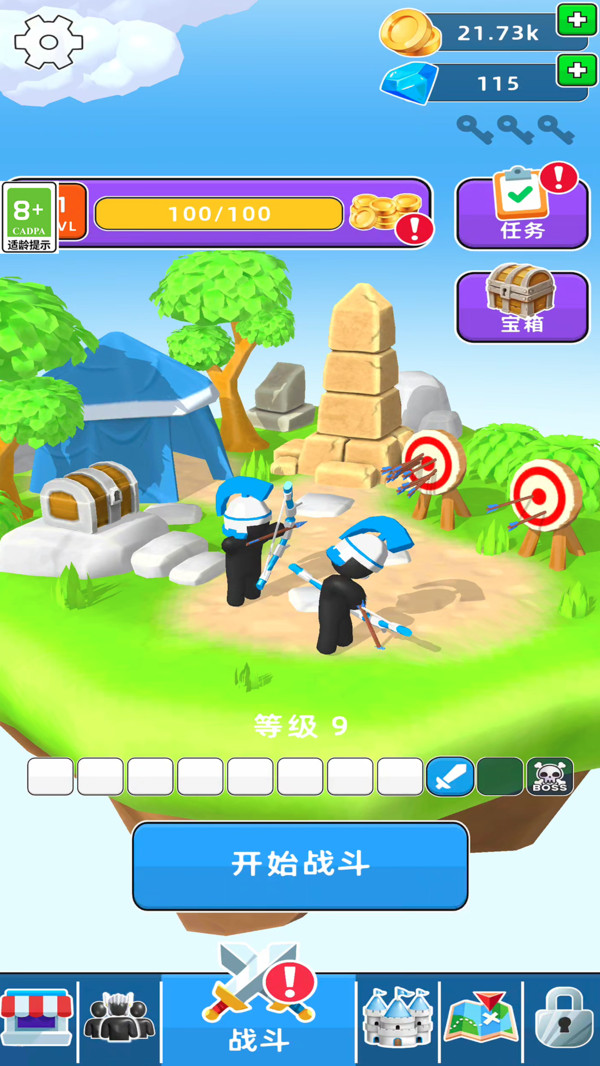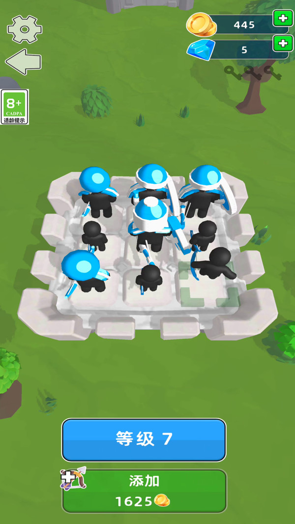2、玩家麾下的弓箭手并非固定不变,可以通过合并来提升其等级与战斗力,为单纯的射箭对决注入了策略养成深度。