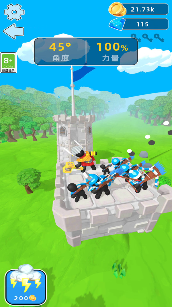 3、游戏以关卡形式推进,每个关卡都是一场独立的攻防战,消灭所有守军后即可占领该城堡,解锁后续挑战。