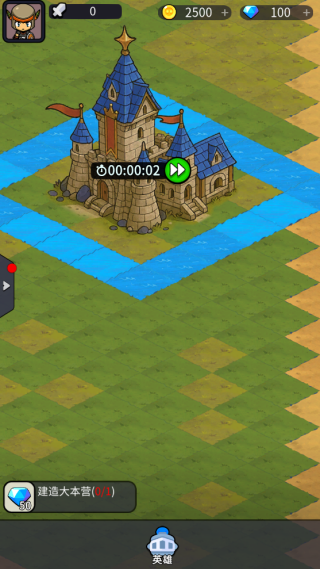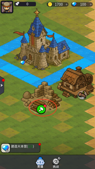 1、进入游戏,点击开始探险,首先开始建造英雄的大本营,点击即可升级。