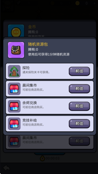 4、建造新的位置,随机的获取资源包,点击前往探险关卡。