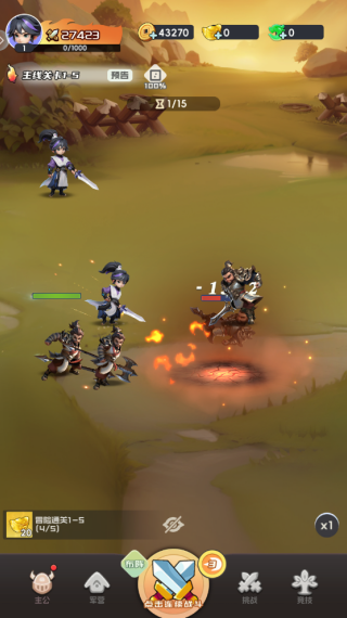 2、升级武将等级,提升英雄的战斗力,点击挑战进入战场,沉浸其中自由的展开挑战。
