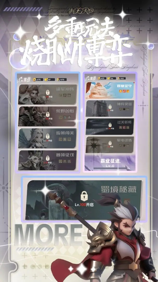 1、每位英雄都拥有独特的技能树和专属装备。你可以根据你的战术体系,有针对性地培养你的武将;