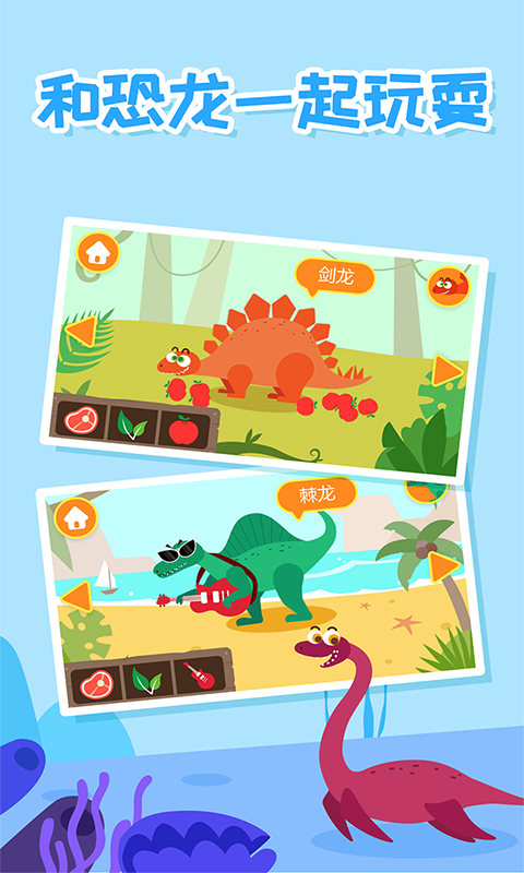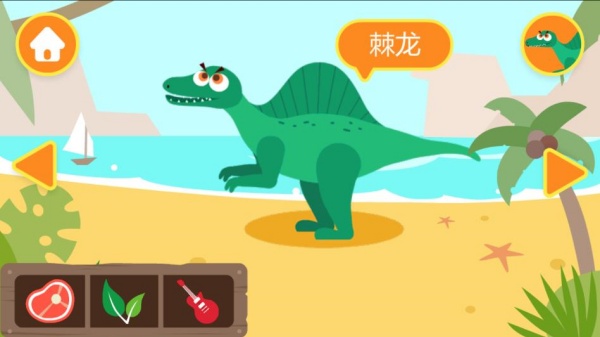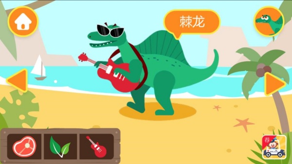 4、点击左下角,可以喂食这些恐龙,还能弹奏音乐,非常有趣。