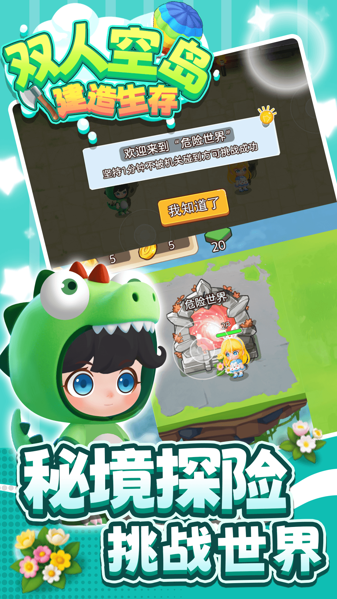 双人空岛建造生存是一款在空岛上自由创造和冒险的生存类游戏,支持双人分工协作模式,一人负责勘探地图、标记资源点,另一人专注收集与分类物资,共同搭建庇护所,依地形选择位置,用木材、藤蔓加固墙体,抵御野兽,玩家仅有一条生命,需精密配合完成垂直挖矿、建造防雷别墅等高难度操作,场景从潮湿海湾到密林深谷逐步变化,在这里到处的探索,寻觅资源努力活下来。