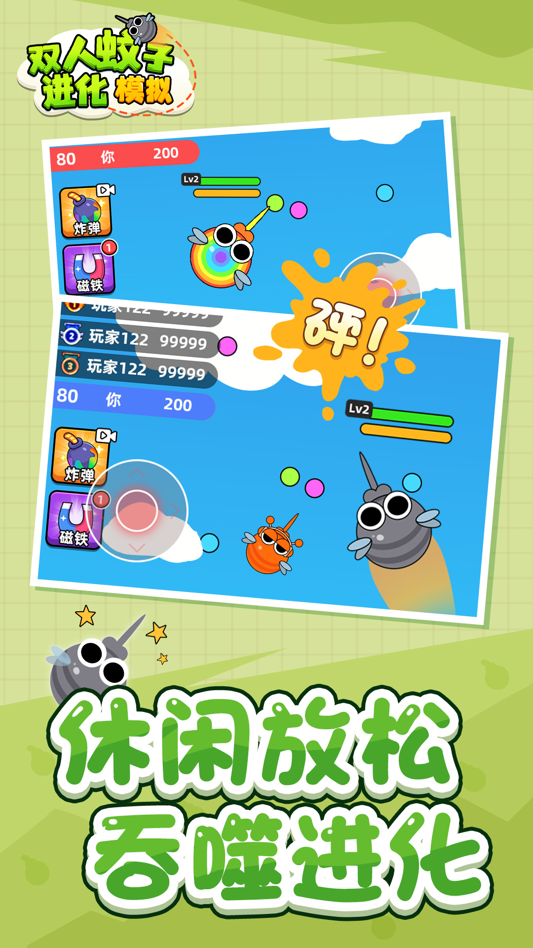 双人蚊子进化模拟是一款非常有趣的蚊子吸血模拟游戏,独特的双人模式,玩家可扮演蚊子与队友协作或竞争,通过吸血、躲避攻击和进化成长来体验独特的生存挑战,以蚊子视角体验微观世界,地板水滴如湖泊、风扇叶片似巨斧,增强沉浸感,在这里到处的吸血,当吸血量达到阈值后,可进化为更强大的蚊子,如体型增大、飞行速度提升,快速成长为最强的蚊子。