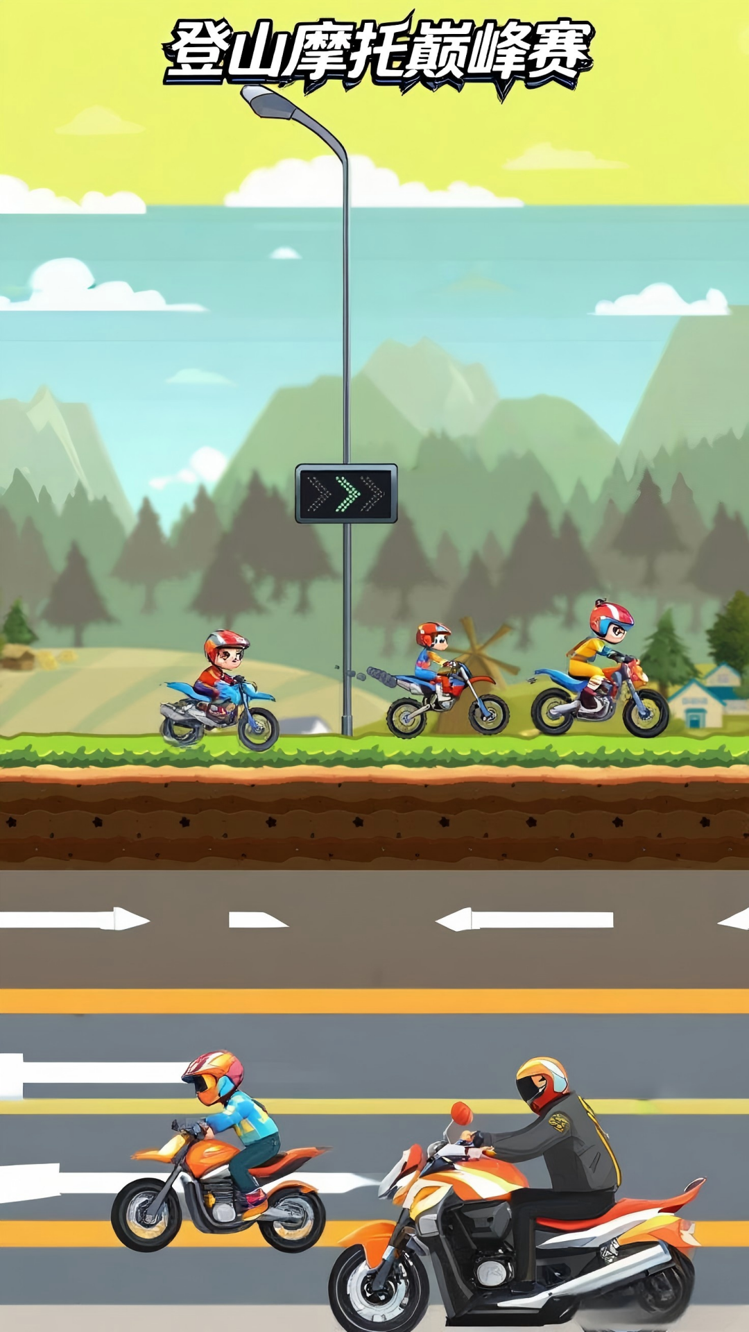 登山摩托巅峰赛是一款驾驶摩特车开始极速竞技的模拟游戏,玩家需通过方向键控制摩托车完成后轮滑、空中转体等高难度特技动作,特技完成度直接影响关卡评分与解锁进度,在复杂地形中连续完成多次特技以通关,碰撞物理引擎模拟真实车辆受损状态,玩家需规避障碍物以保持车辆完整性,若操作失误导致翻车或撞击,摩托车会呈现真实损坏效果,你也会终止比赛。