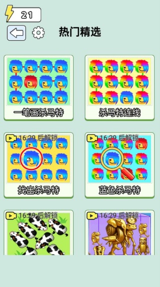 2、很都热门关卡都可以挑战,比如说一笔画杀马特,杀马特连线,找出杀马特等等。