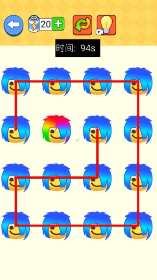 3、运用一笔画的方式,将所有相同的头像都给连接其中,才算完成挑战。