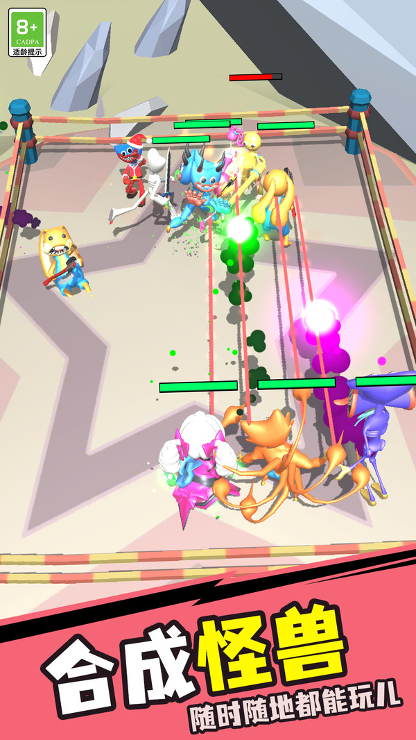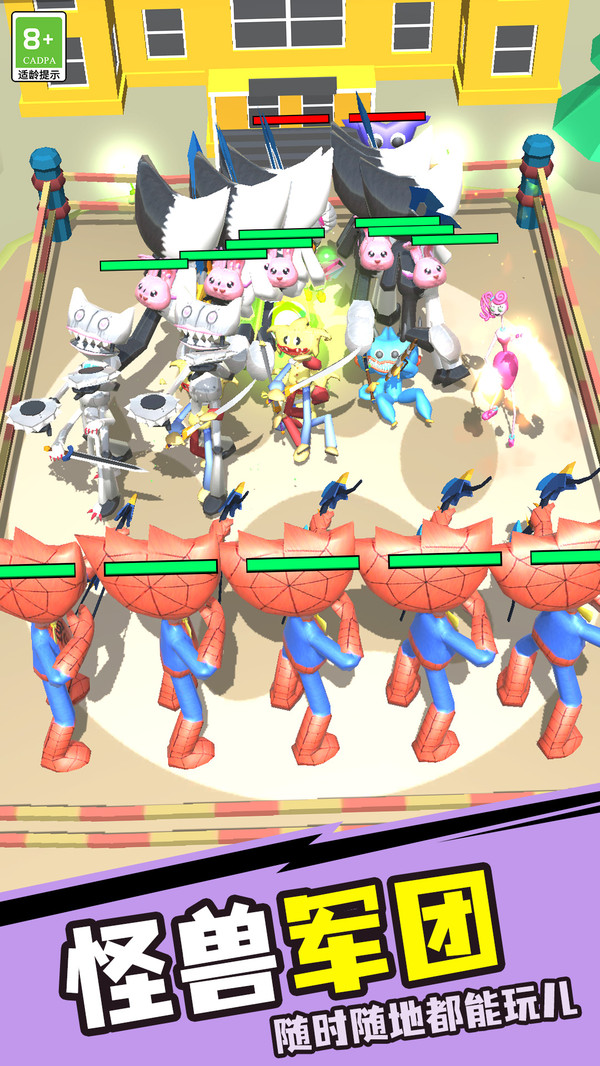 2、战斗采用自动进行的模式,玩家在开战前布置好怪兽站位后,双方将自动交战,胜负取决于你的阵容强度与站位策略。