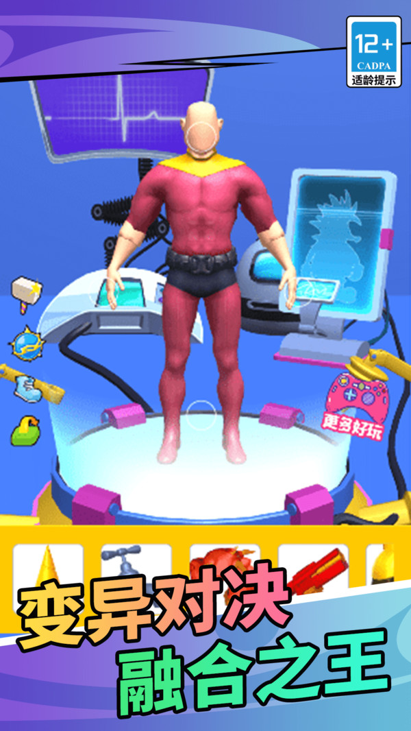 1、为你的变异角色进行改造,利用多种类型的道具自由组合身体部位。