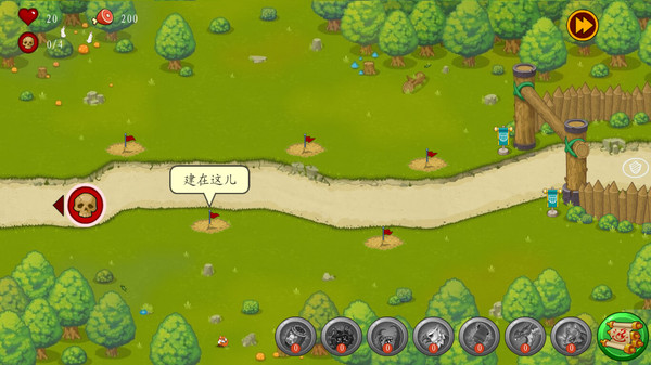 1、进入游戏,在沿路点击设置各种炮台,射击一波波的怪兽,守卫家园的安全。