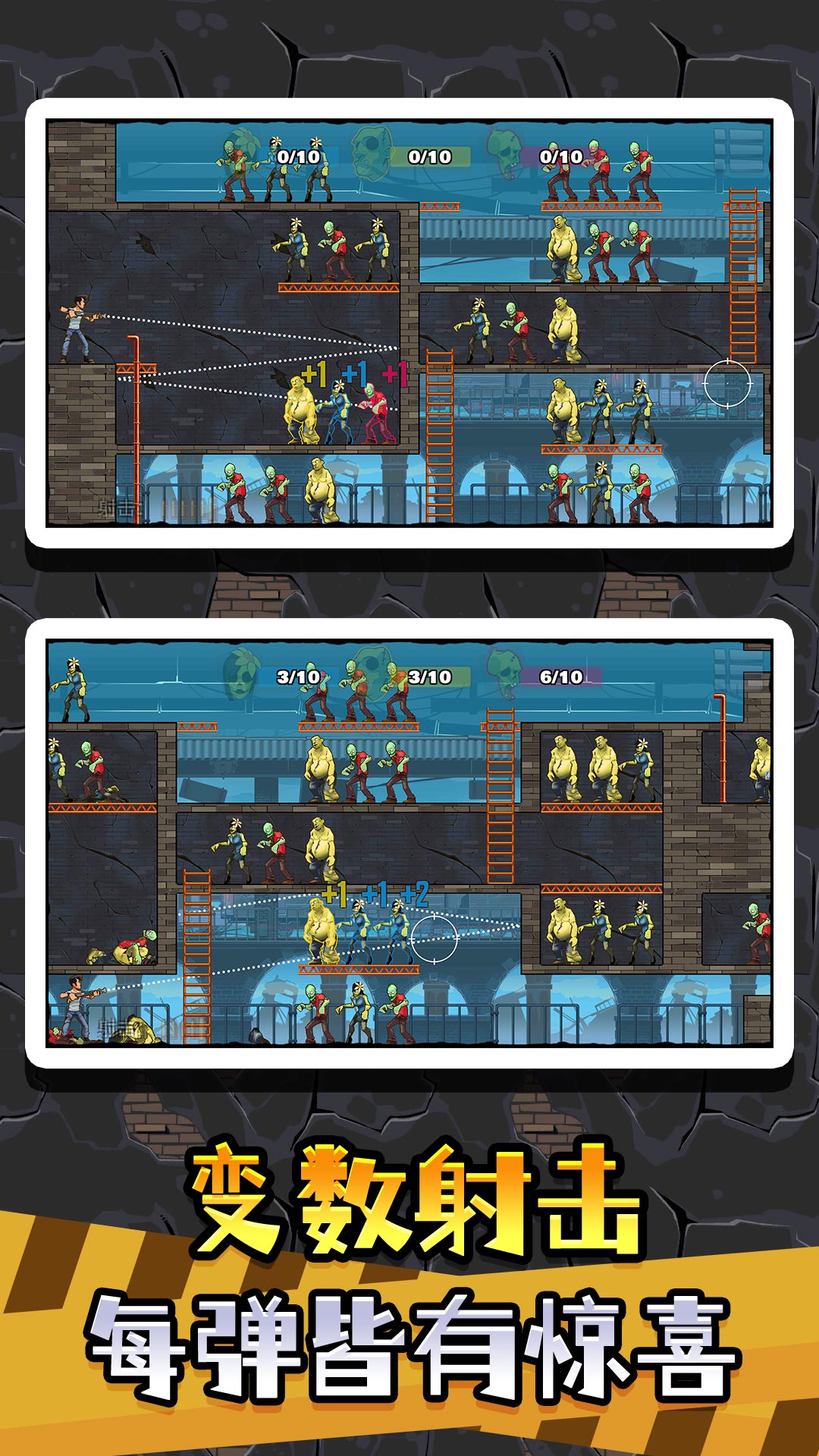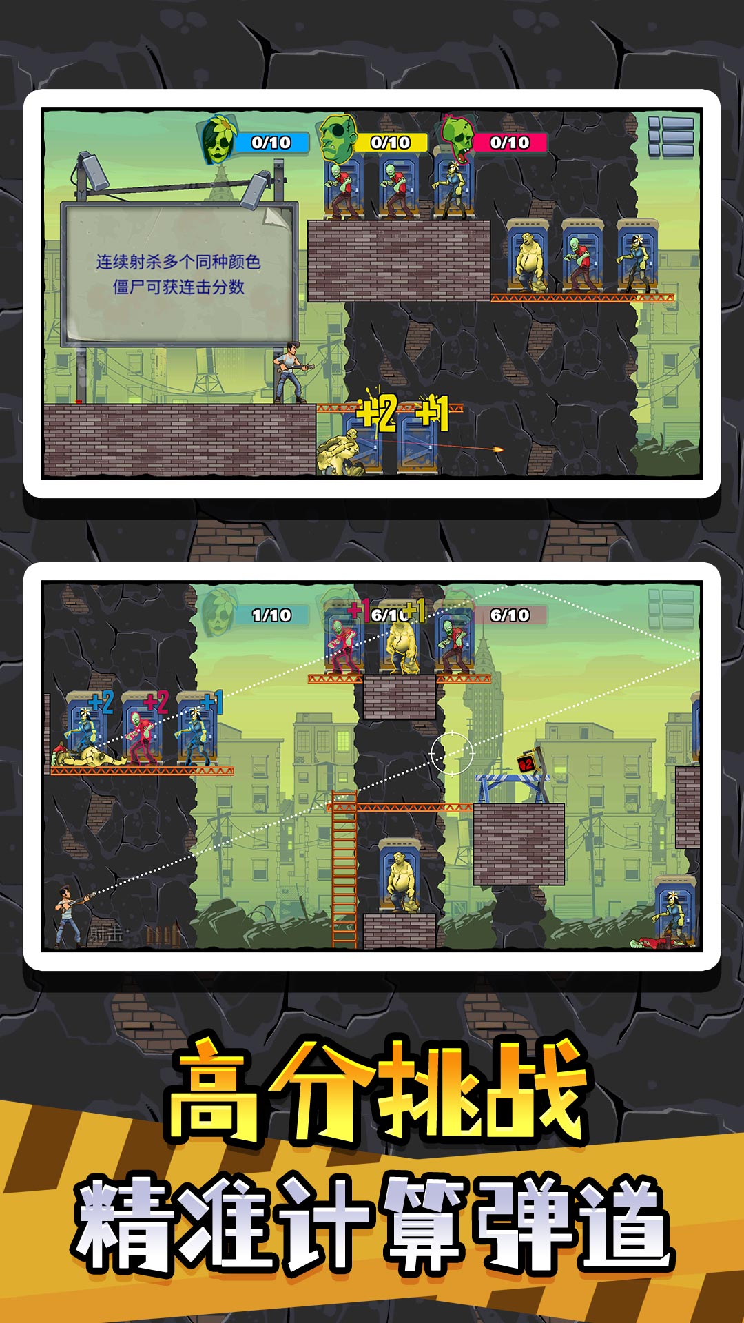 2、来击杀多个同种颜色的僵尸即可积累分数,精准的射击沿路的敌人。