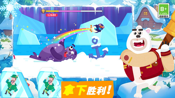 3、企鹅角色可通过弹射获得短暂加速,突破速度极限,在竞速过程中,发射企鹅攻击对手载具,干扰其节奏。