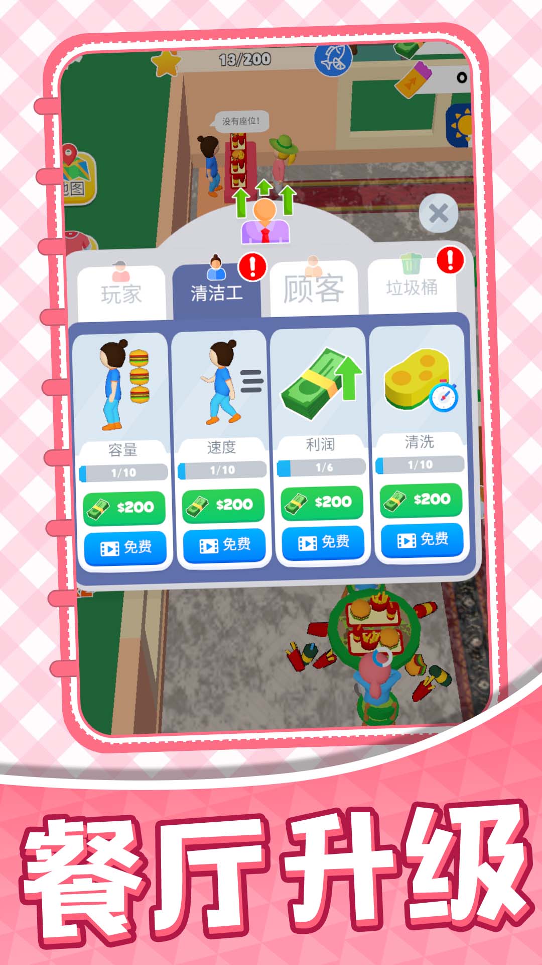 1、升级店铺装修与员工技能,提升顾客满意度与店铺盈利能力,不断赚取财富,扩张自己的汉堡店规模。