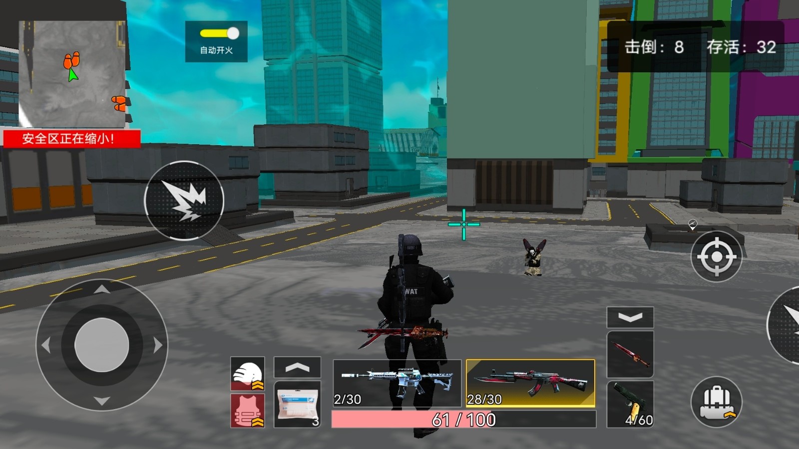 3、随时关注存活人数,寻找到他们,顺利击败每一个对手。