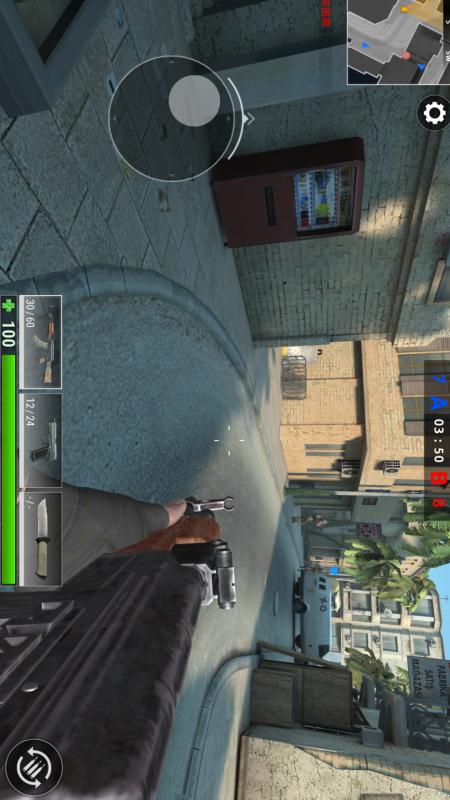 2、通过虚拟摇杆控制角色移动,左手区域调整站位,右手区域滑动屏幕精准瞄准目标。