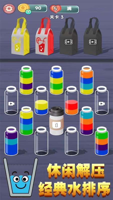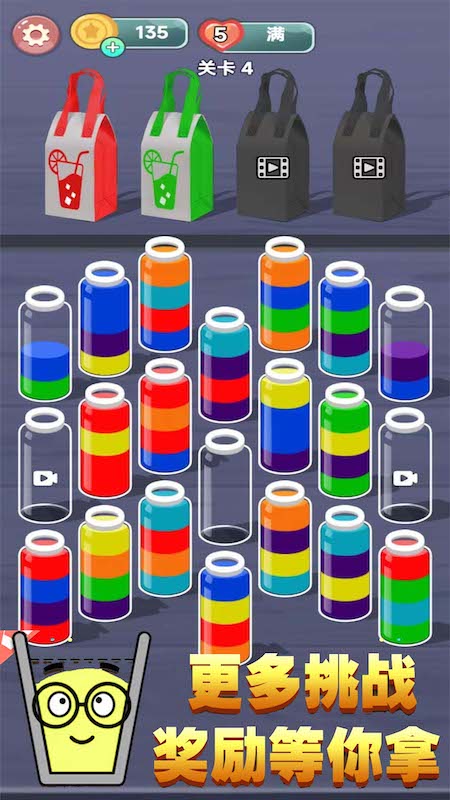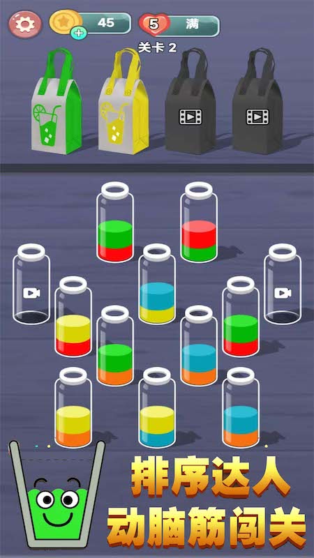 1、将不同颜色的液体进行分类,这种零门槛的上手方式,让任何年龄段的玩家都能在瞬间理解游戏目标。