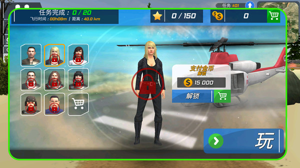 1、游戏中有多个驾驶员角色解锁使用,操控驾驶员完成驾驶飞行任务。