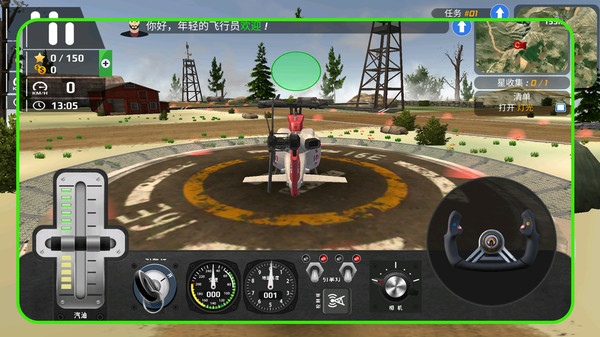 3、左侧汽油杆推进控制你的直升机起飞以及降落,右侧控制飞行的方向。
