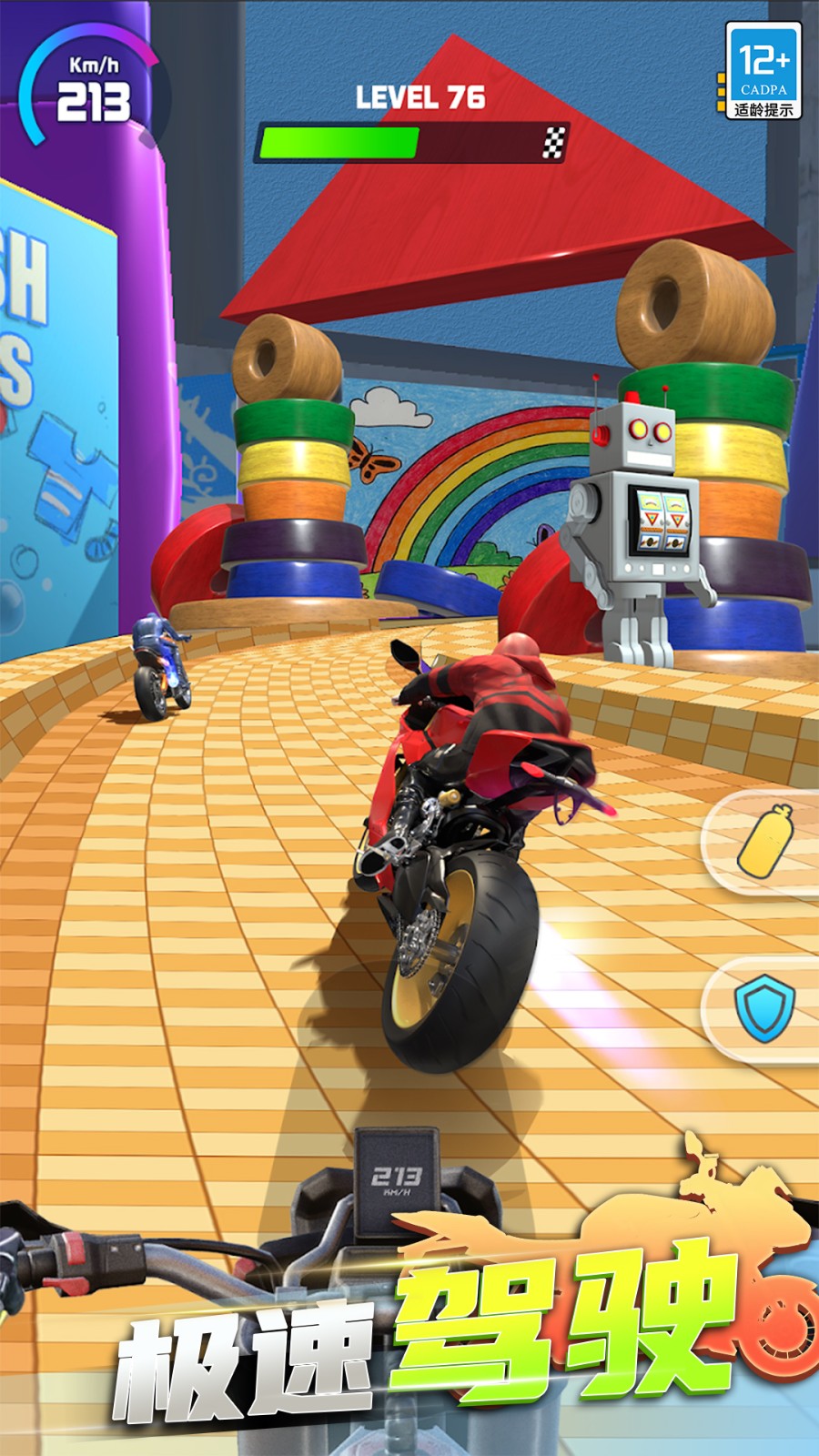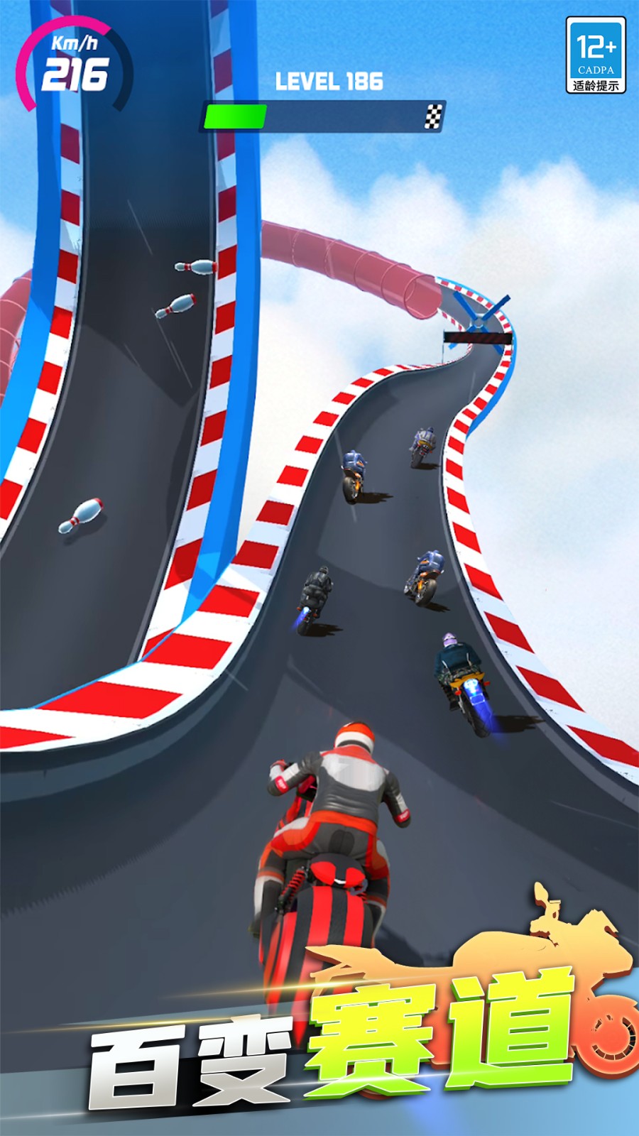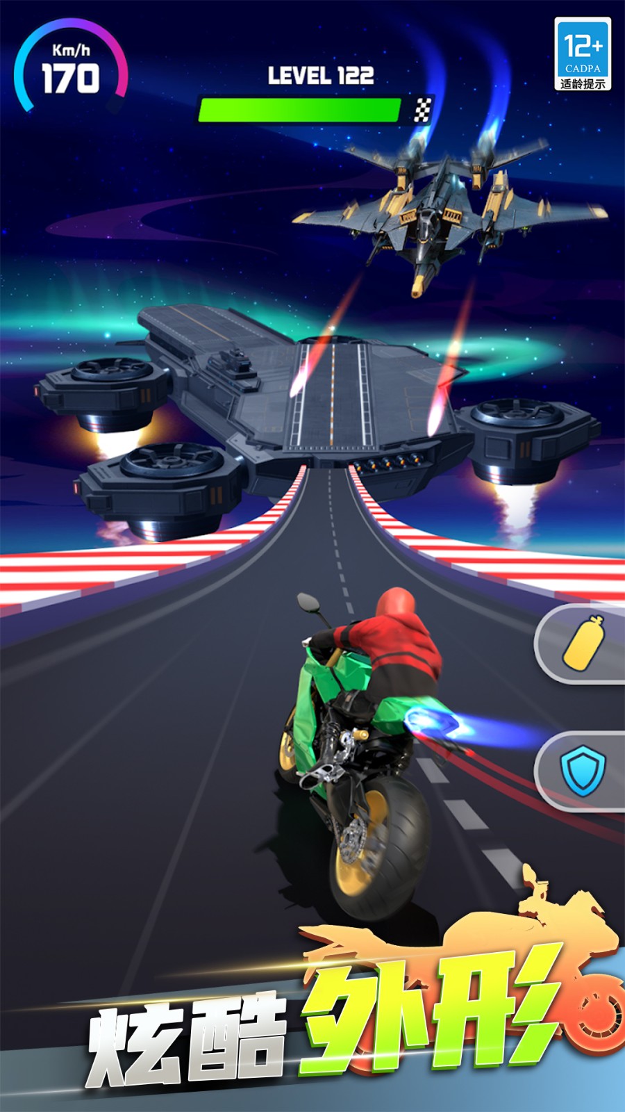 1. 玩家可以自定义摩托车的引擎性能和外观涂装,不同型号的机车对应独特的加速曲线与操控手感。