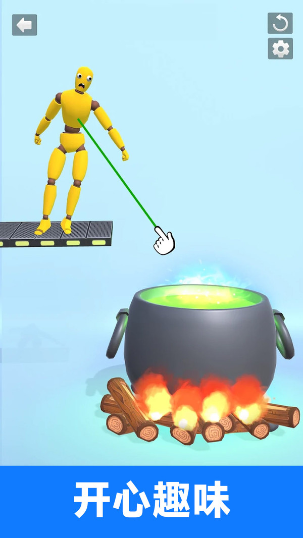 4、第三关继续,移动木偶人,将它全部的粉碎干净。