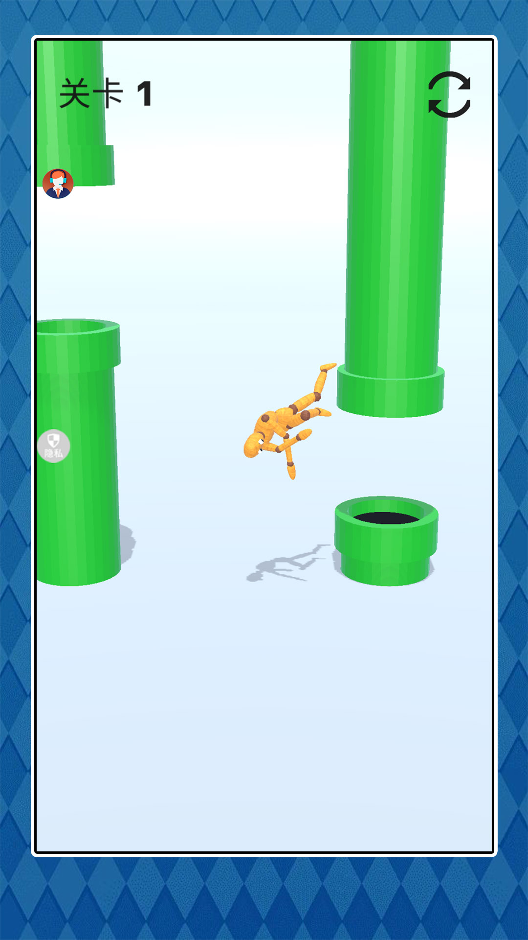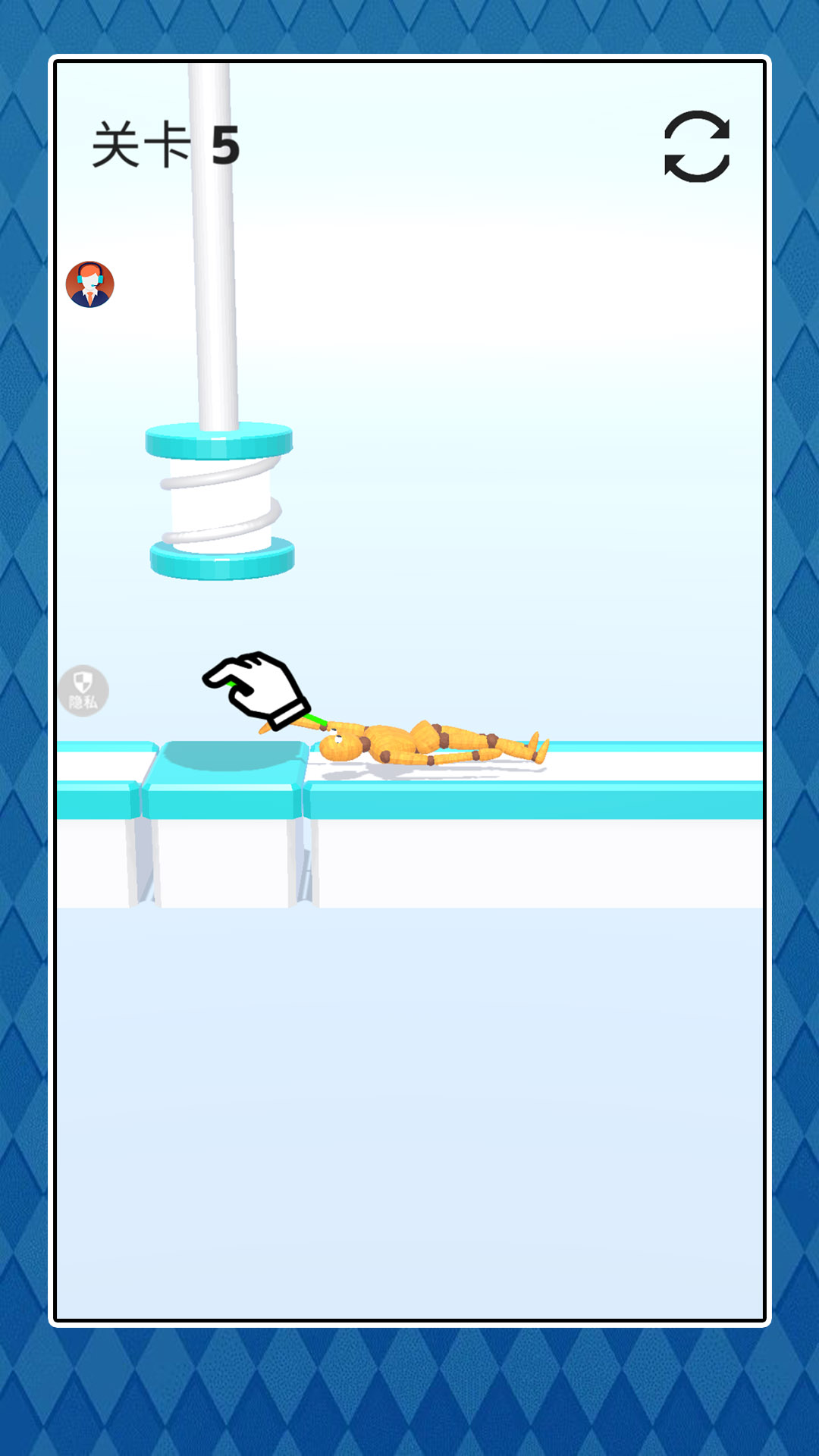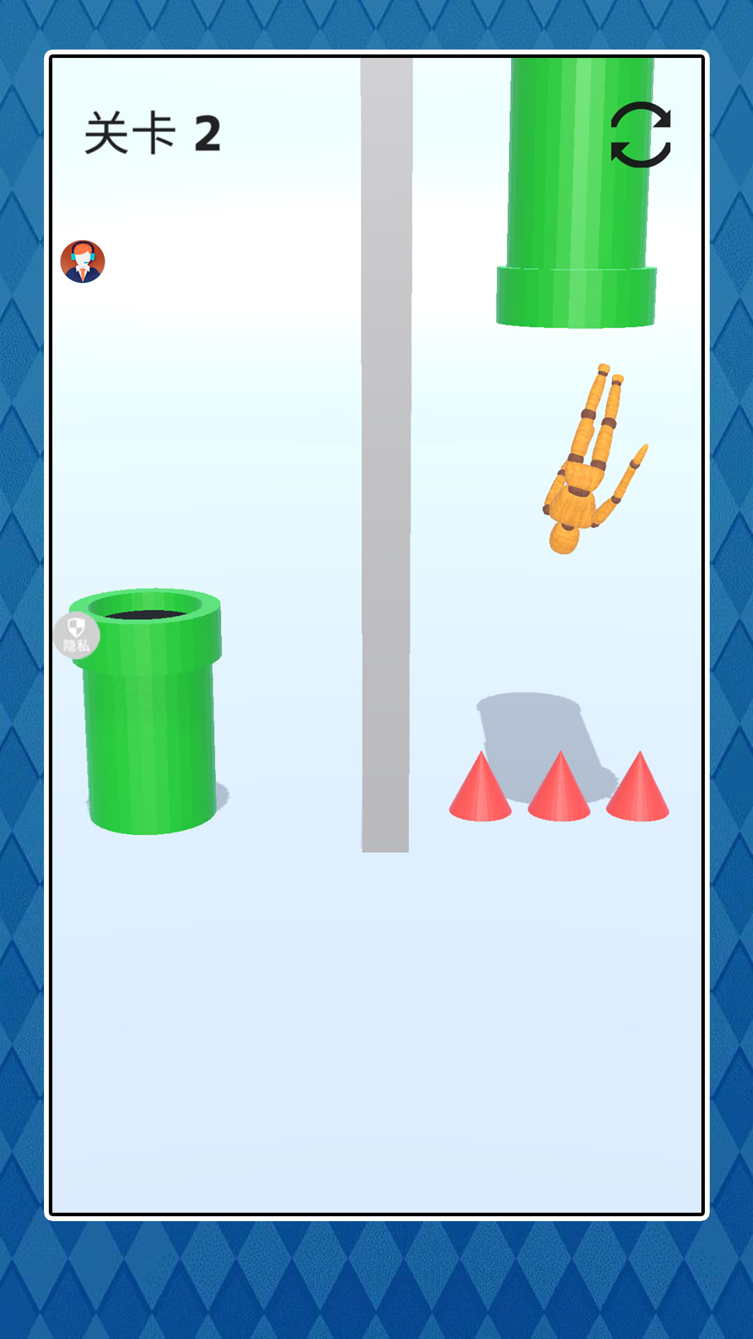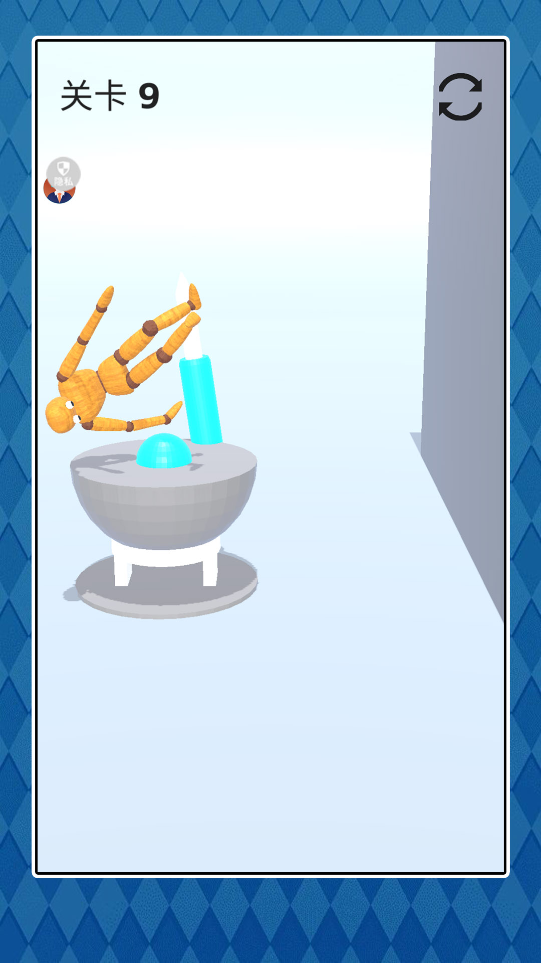 2、粉碎后继续开始,将木偶人丢人桶里,两边桶是互通的,可以将它继续粉碎;