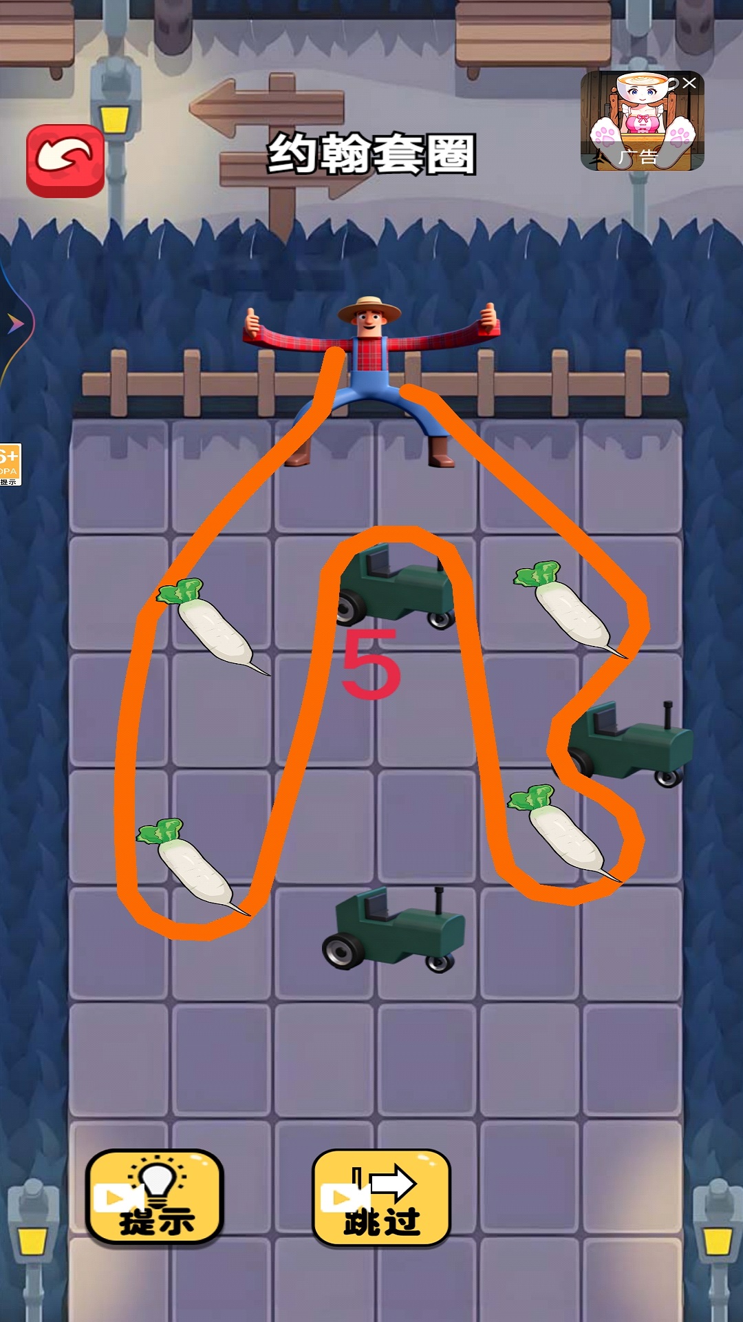 3、通过观察萝卜分布,锻炼对空间的布局能力,规划最优路径需结合数学推理与试错调整,圈住所有萝卜。